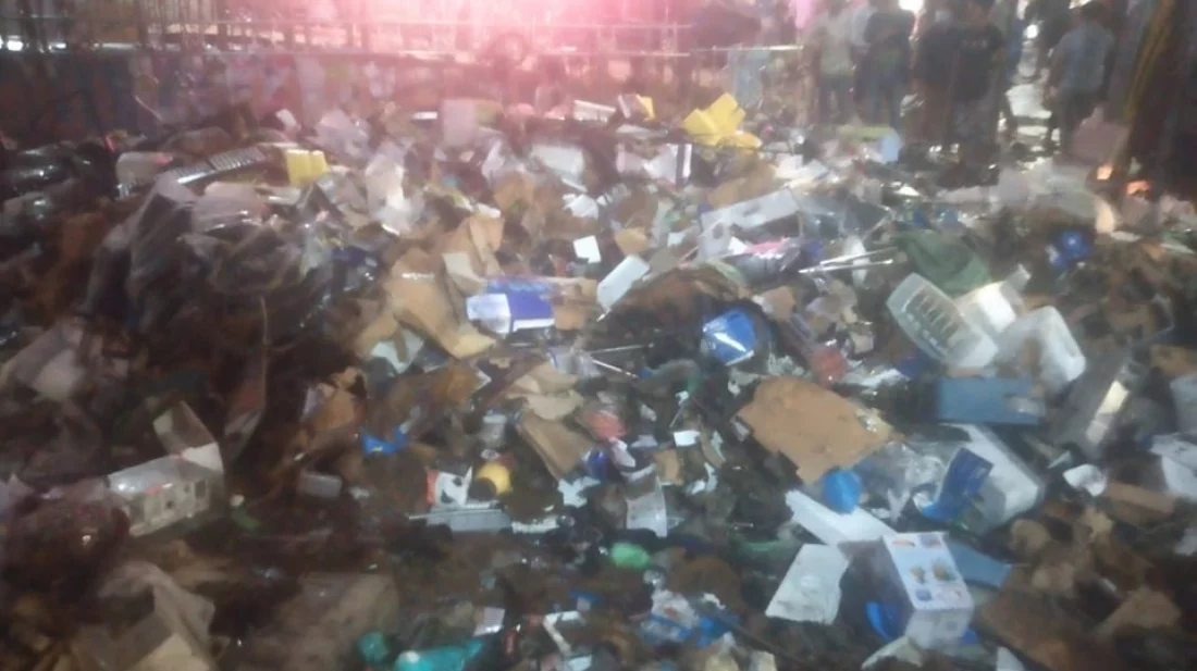 রাজধানীর বাংলামোটরে আগুন লাগা আর কে টাওয়ারের সামনে পুড়ে যাওয়া খেলনা সামগ্রী স্তূপ করে রাখা হয়েছে। এদিকে আগুন লাগার কারণ এখনো জানাতে পারেননি ফায়ার সার্ভিসের সদস্যরা।
